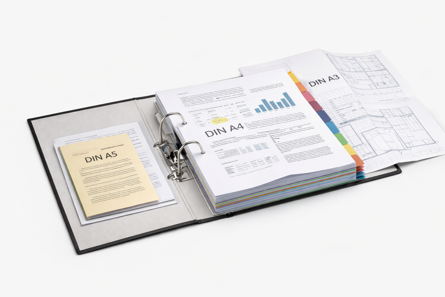 ![]() | Mischordner: gemischte Formate (DIN A6 bis A3) | 21,50 € pro Aktenordner (bis 450 Blatt) | 0,00 € | |